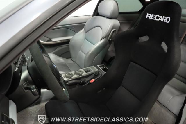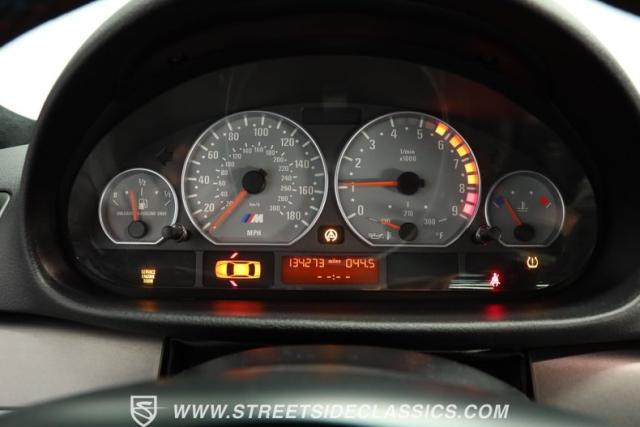 Inside, BMW didn\'t forget that the M3 also needed to be a luxury car. A driver-centric cockpit begins with an aftermarket Recaro driver\'s seat, designed to keep this car\'s pilot comfortably in place, no matter how many G-forces try to interfere. A power-assisted, M-spec steering wheel comes complete with thumb controls for the stereo and cruise control. A four-pod gauge cluster features a 180 mph speedometer and a 9,000 rpm tachometer that utilizes colored warning lights to alert the driver when they approach the redline. A digital tachometer shows off this car\'s 134,272 actual miles, proving there is plenty of joy left to be had from behind the wheel. A heated passenger seat, sunroof, power locks, windows, and mirrors provide all the modern amenities one could ask for. At the same time, the Harmon Kardon AM/FM/CD premium sound system handles soundtrack duties.