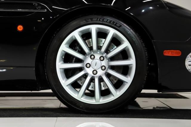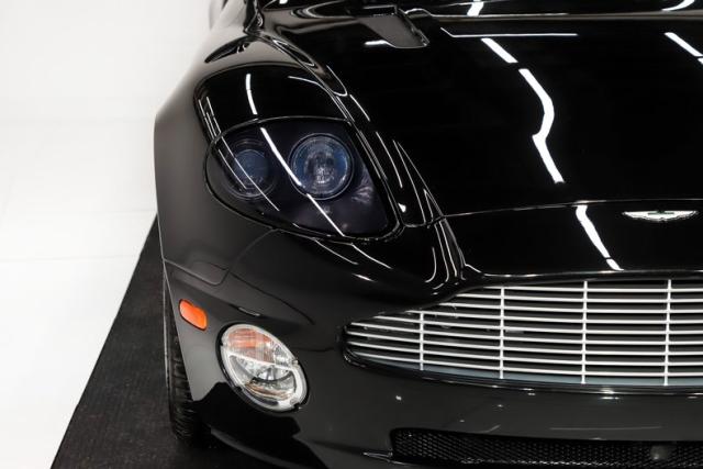 EXTERIOR: A stunning blend of elegance and super car aggression with muscular flowing lines. It is virtually flawless, I couldn\'t find any defects. The super formed aluminum body panels were individually hand finished, then given nine coats of black metallic which were hand flattened in between coats. It took 54 hours to prepare, paint and polish the Vanquish. The Michelin Pilot Sport tires are wrapped around 18 inch wheels.