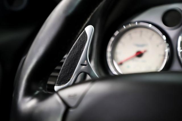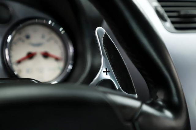 INTERIOR: It is spotless inside too. Very sophisticated and sporty at the same time. This one has the optional 2+2 rear seat package. The exquisite hand stitched upholstery takes 78 hours and 8 Bridge of Weir leather hydes to trim the interior, there\'s glove soft leather everywhere! The power Recaro seats have lumbar and optional heat. This one has the premium stereo with an amplifier, subwoofer, speakers and tweeters throughout. I tested it out and it made my hair move! The tilt-telescopic wheel has paddle shifters for some spirited driving. From the Wilton carpet to the alcantara headliner it is first class!