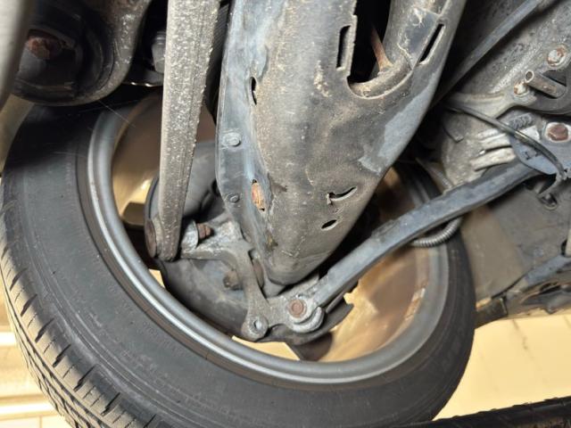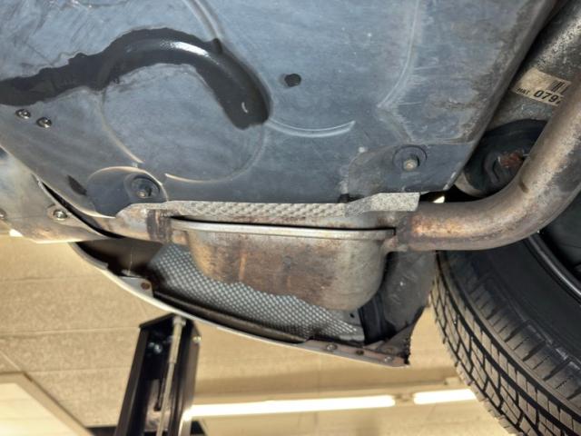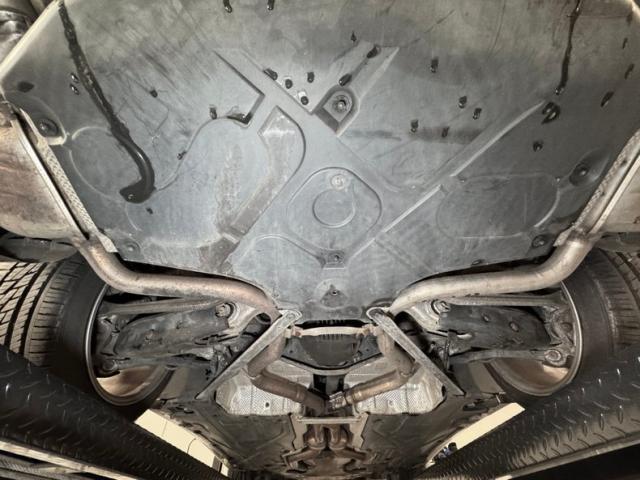 Heat shields abound underneath and provide a buffer from the dual exhaust that runs down the center tunnel, through original equipment mufflers, and out the back through chrome tips. Four wheel power disc brakes are on board for this high end cruiser and suspension is independent front and rear with Macpherson struts all the way around. Clean and dry conditions prevail underneath and belly pans are fully intact.