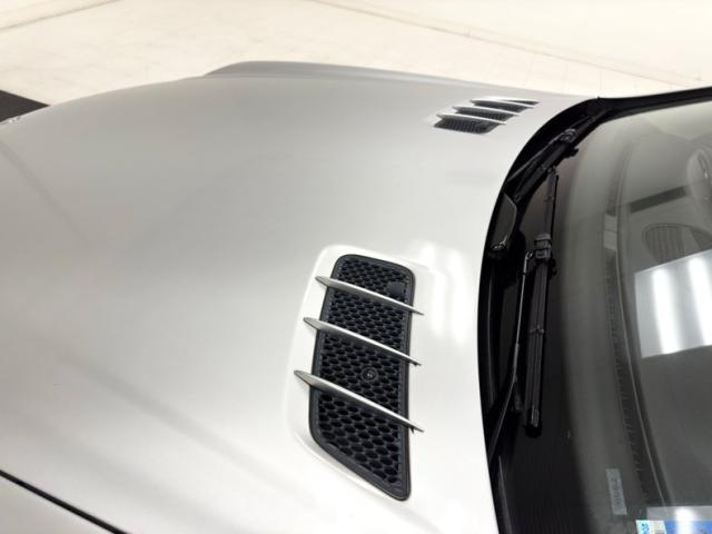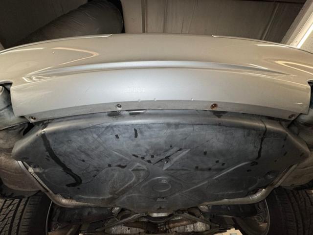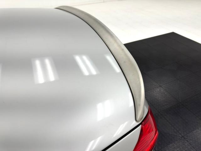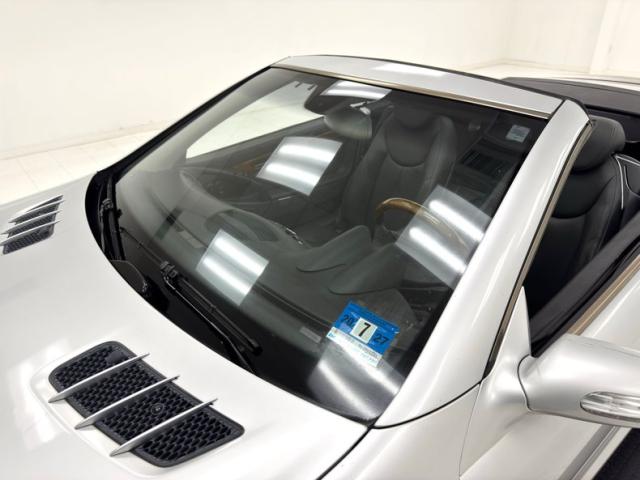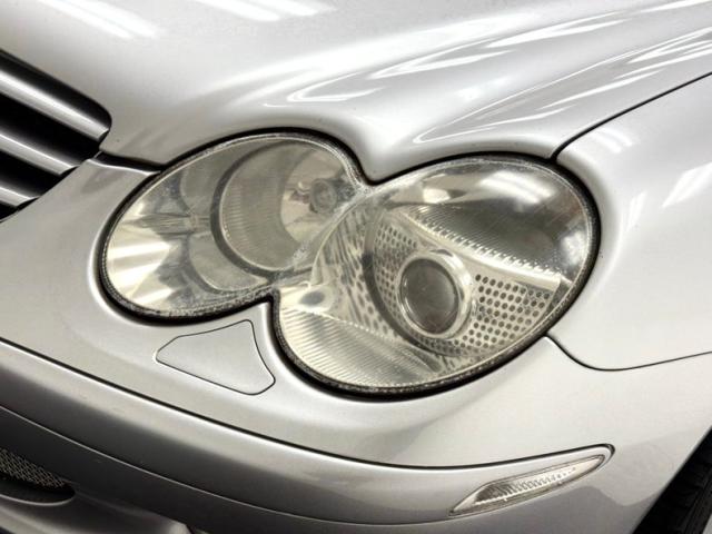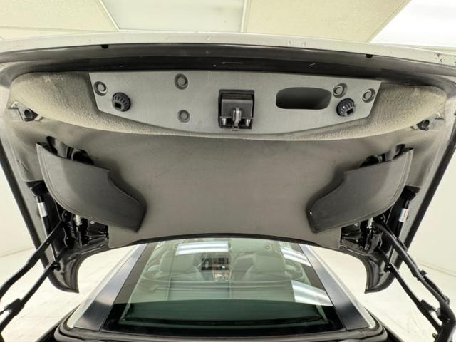 Curves abound on this Brilliant Silver Metallic, veering from the angular disposition of previous generation SL\'s, and even the rocker panel has wind defying curvature. The sharp nose is first to cut through the air and the cross bars of the flush grille create a staircase through which air flows. Aggressive intakes on the cowl are matched by the beautifully designed fender vents while the rounded retractable hardtop sends air asunder and back to the modest spoiler. That spoiler hovers over flush tail lights and a clean, streamline rear fascia that includes exhaust split wide and fitting the space provided by the valance. 18-inch wheels carry 40 series tires and a few of them show some curb rash. The good news is that other than that and some discoloration of the rear spoiler, no other imperfections were found on the exterior.