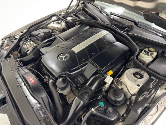 Mercedes does great interiors and this one is a testament to the attention to detail and quality of materials. The taut materials on the door panels, for example, a flowing arrangement of plastics, leather, wood, has held up very well over the past 20 years of usage and the same could be said about the black leather bucket seats which are fitted onto the floor via an integrated base with substantial padding. Slight patina presents on the steering wheels along with wood trim and robust thumb buttons. It fronts a deeply browed gauge cluster with side units complete the central control panel. From there, the center stack takes over with attractive wood framing and a screen that is flanked by a myriad of switches, topped by the CD slot that accompanies the AM/FM radio. The center console is a continuation of the ornamental wood and houses the shifter, all over gray carpet with fitted mats and carpet is also used for the trunk and presents nicely.