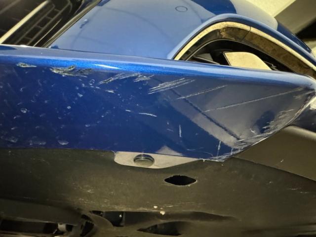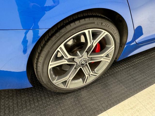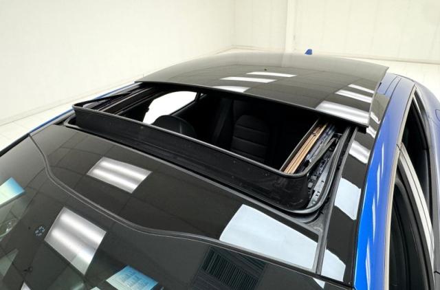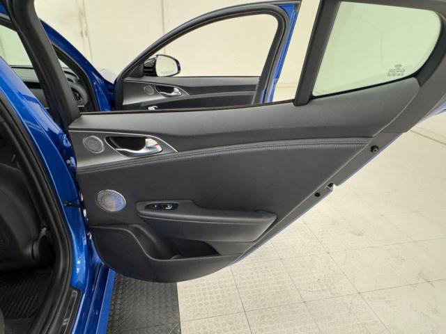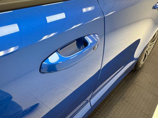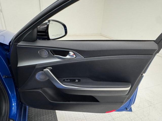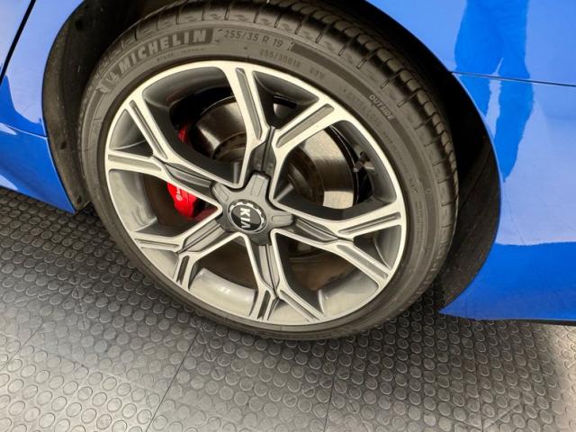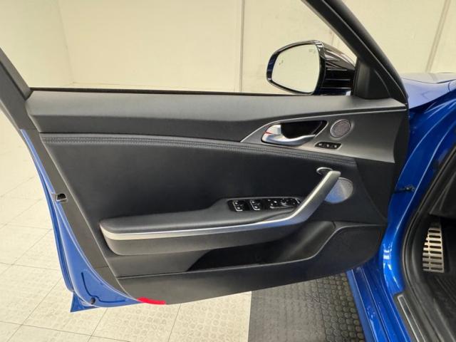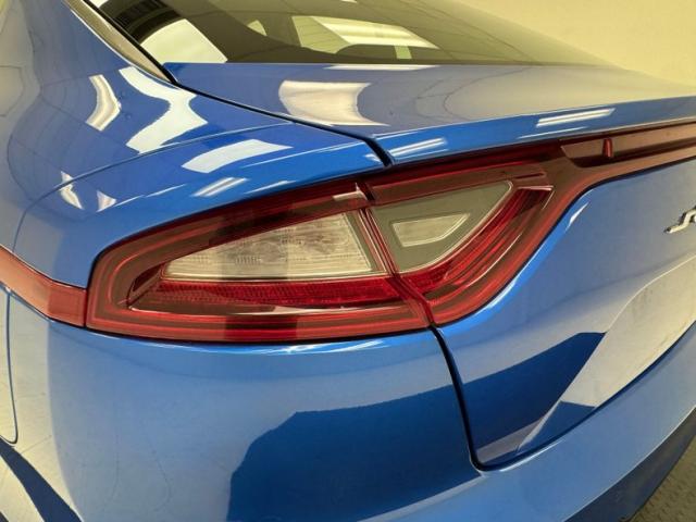 Simulated ducts and vents are nothing new; they\'ve been around since the 50\'s at least. Part of the appeal of the Kia Stinger is how it was transformed from an otherwise rudimentary shape and design into something exciting and aggressive with placement of scoops, vents, and cladding on just about every corner, and a few are even functional. Our Micro Blue Pearl example also highlights the thin strip of wraparound taillight that is ultimately distinctive while stylish 19-inch wheels with their original low profile tires and red calipers further enhance the profile view. More than half the roof is designated as a panoramic sunroof which slide back externally, stopping just before the shark fin antennae. Imperfections are few and include a chip on an A-pillar, a scuff on the front apron, and some typical chin scrapes.