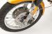 This R90S has a pair of rotors on the front axle. These rotors have the cross-drilled treatment for better performance in the wet. We also see an installed as part of the San Jose Performance Kit is a stronger front fork top clamp and braced swing arm. A drum brake provides the whoah factory for the rear tires and we see new brake, throttle and clutch cables along with Koni rear shocks.