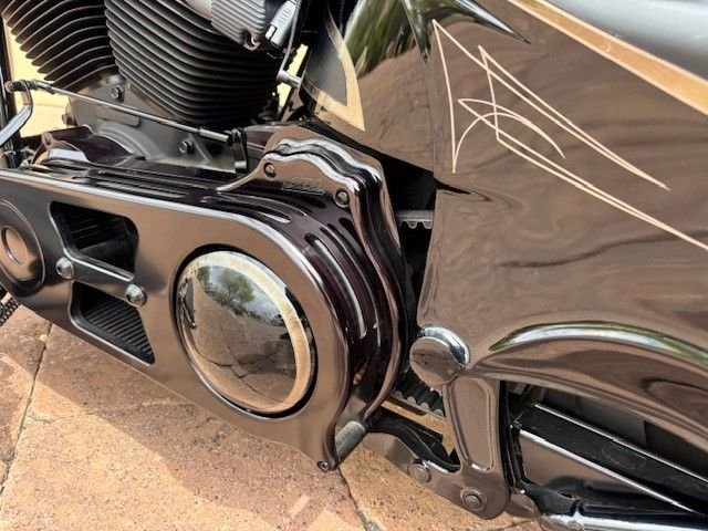 This 2013 FLS Harley Davidson is one of a few Donnie Smith Custom Baggers built. The entire motorcycle was fabricated from the ground up starting with a 2013 Harley-Davidson Softail Slim. The best of everything was used to construct the bike. The fenders, fuel tank, saddlebags, and side pieces were all hand made. The bikes frame was raked and sports a 26 inch wheel in the front and 16 inch wheel in the rear; which sits the bike perfectly. The 103 CI engine retains a Kuryakyin cam and Vance and Hines exhaust. There are also cool parts that were used from Roland Sands, Arlen Ness, DSCC amongst others. The paint is a custom black mix with silver leaf treatments. The seller has documentation on the purchase and build. This motorcycle is a special one of a kind opportunity to own an elegant Donnie Smith Custom that was featured in American Bagger magazine. Bike is being offered from a spectacular collection out of Scottsdale, Az. Offered at $37,000 OBO. For more information please visit our website at www.classiccarmarketing.net or call us at 619-972-7073. Please mention the vehicle you are inquiring about so we can respond promptly. Inspections are encouraged before any purchase, of any vehicle, anywhere.