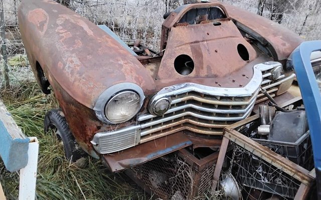 1942 Cadillac front end/clip (those characteristic fenders and grille area) 1942 Cadillac context: Last year before WWII production stopped (1943-45 had no civilian production) Desirable front end for custom builds due to the flowing fender lines Those sealed-beam headlights are period correct.