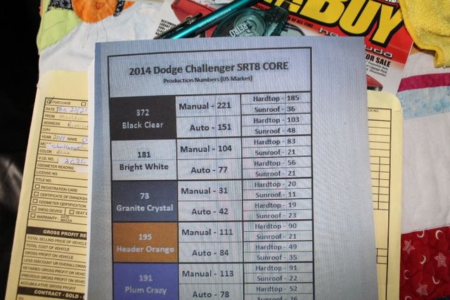 2014 dodge challenger SRT CORE 392 v8 1 of just 1169 eve built only 77 were white only 57 ht coupes were built a real low production car,,just 70000 actual miles options are 5 speed automatic transmission $1200 20 inch black wheels $795 aax sound $450 satilite radio $195 u-connect voice command with blue tooth $395 shipping $995 total $43515 its perfect with clean car fax report,i have books,window sticker and car fax,no accidents,the car only needs a new owner only,the car will run 12.1 in quarter mile at 114 mph,its priced at $19995 im a car dealer collector and have been in business for 58 years,i buy,sell,trade and offer inspections,i have muscle cars,55-57 chevys,fords,jeeps,tesla,bentley,classic trucks,pontiac and trailers,75-100 photos of all my inventory,at www.classicsportsandtrucks.net call 602-820-7395