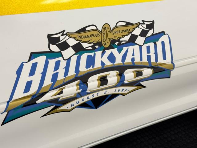 For consignment, a verified mileage and consignor stated #5 parade car from the 1997 NASCAR Brickyard 400 spectacle. This 1997 Camaro Z28 has a verified consignor stating 385 original miles and has the #5 designating it was the 5th car in the pre-race parade, (AKA Festival car), where the PA inspection sticker would normally be. A virtually new car in many ways and sporting the Brickyard 400 sticker and a bevy of colorful flourishes on the side panels which end in a checkered flag graphic on the top of the rear quarter.