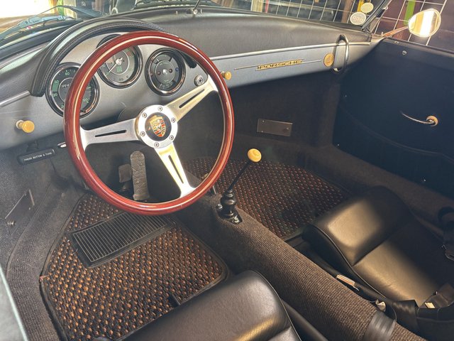 This 1958 Porsche Speedster Replica by Vintage Motorcars in Hawaiian Gardens, California is configured completely stock and looks and drives like a dream. Power comes from an air cooled 1915cc flat four engine features twin 40mm dual barrel carburetors, Bosch ignition, oil cooler with electric fan and new exhaust. The engine has a 69.5mm chromoly crank, and 8 dowel flywheel. Manual transmission to feel the pedal to the metal. Independent rear suspension with adjustable front torsion bar, rear trailing arms, and adjustable front dampers. This build uses an IRS on a rear suspension with twin I beam front. New German fuel lines were installed during the build. Period correct 165R tires complement the build achieving proper ride height and stance. The seller notes that maintenance is up to date. Offered at $62,500 OBO. For more information please visit our website at www.classiccarmarketing.net or call us at 619-972-7073. Please mention the vehicle you are inquiring about so we can respond promptly. Inspections are encouraged before any purchase, of any vehicle, anywhere.