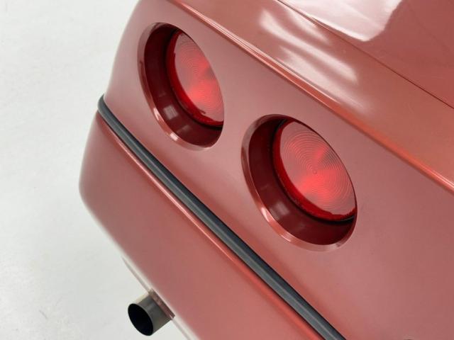 The \"It\" color for Corvettes, a Dark Red Metallic bathes the fiberglass sculpted exterior. Badging is all correct, as well as working hidden headlights. Black plastic trimming wraps entirely around this car at the midline and creates a nice contrast to the red. Black wheels add to the menacing look of the dark red and other black accenting. On the back deck is a large greenhouse rear glass. This rolls gently down to a small back deck and takes a vertical dive downward for the tail and the round tail lights deeply inset within the neoprene rear bumper and rear roll pan. Quad exhaust tips are showing off at the bottom of this bumper. Overall the paint and fiberglass remain in good condition.