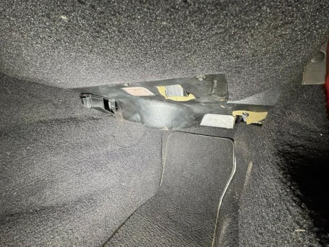 Slightly used black carpet floods the floors and the back trunk area, it is a bit faded but clean. Black bolstered and checkered inset broadcloth buckets, showing as original, have minimal wear cozy up to the center console and dash. A black center console holds a black topped storage unit. This also houses the controls for power windows, and exterior mirrors, shift lever for the automatic transmission, climate control, AM/FM/Cassette radio, and a data center with a screen to display information regarding gas mileage, service warnings and other key components of the car. An all digital cluster of gauges in colorful form all working like new are fronted by a black rimmed rally style steering wheel. All surfaces are slightly showing some wear and dirt. The headliner is black and sags a bit.